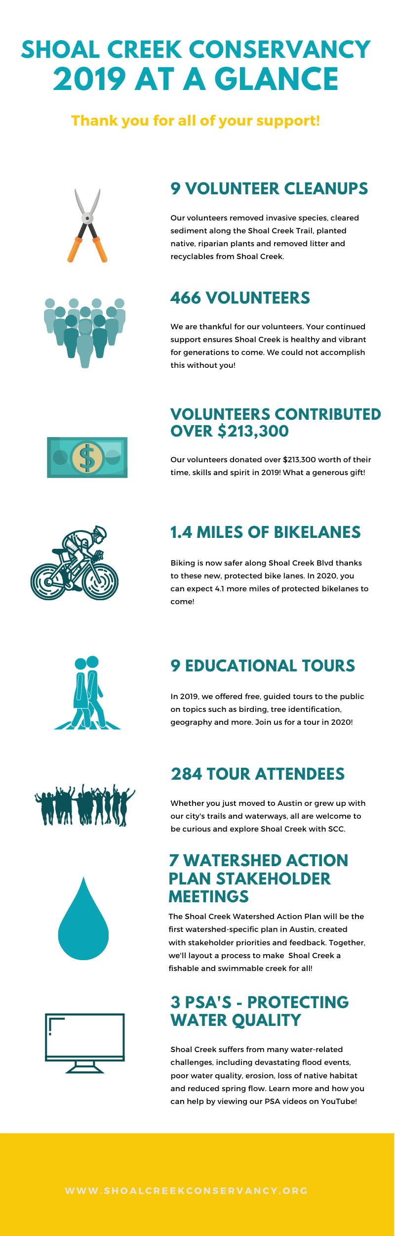 All of us at Shoal Creek Conservancy want to thank you for your continued support of the Shoal Creek trail, creek, and watershed!