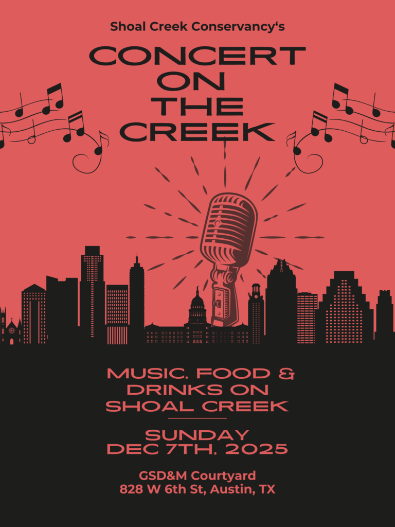 Celebrate Shoal Creek and Austin’s oldest hike-and-bike trail at the Concert on the Creek on December 7th!